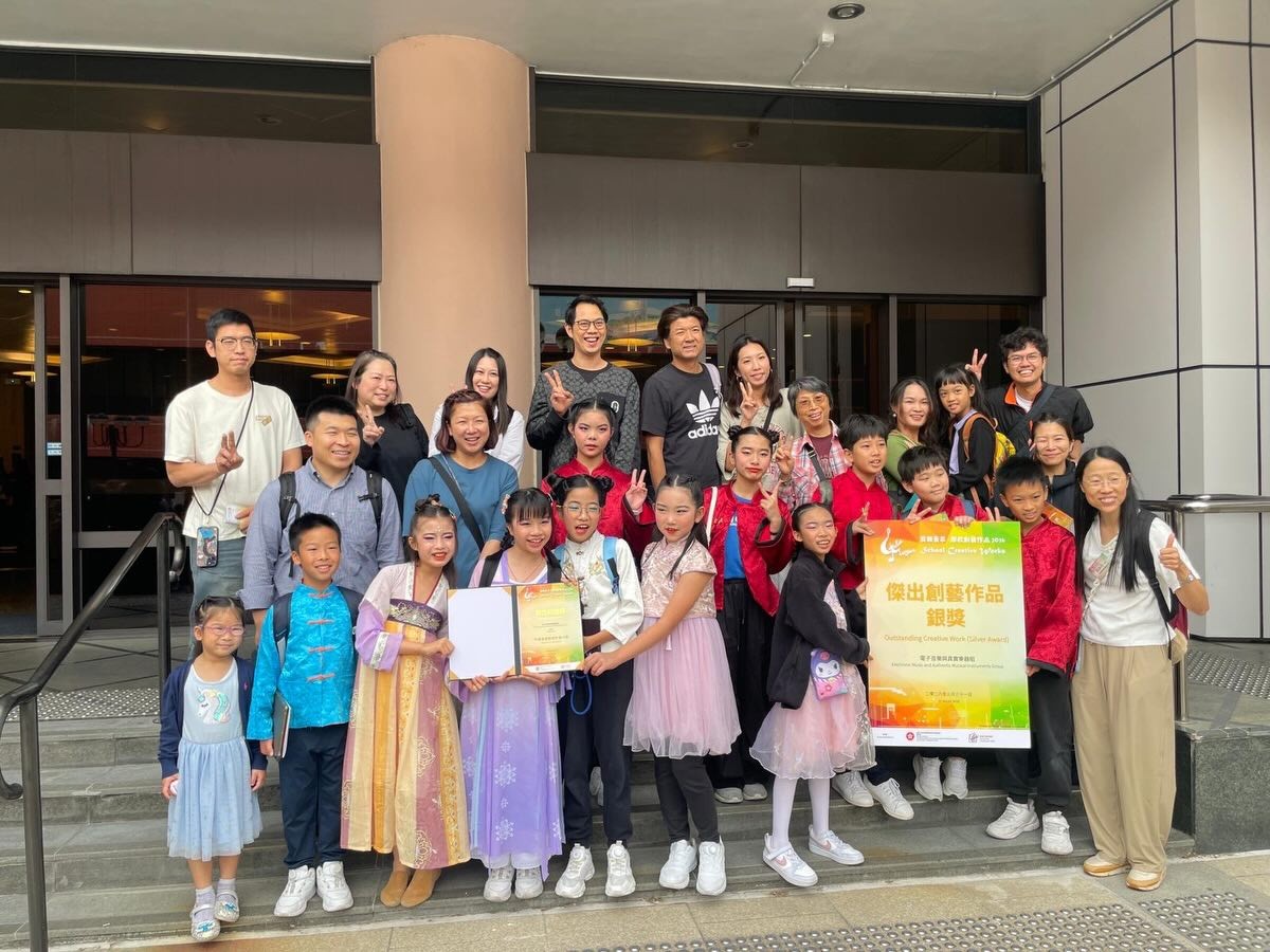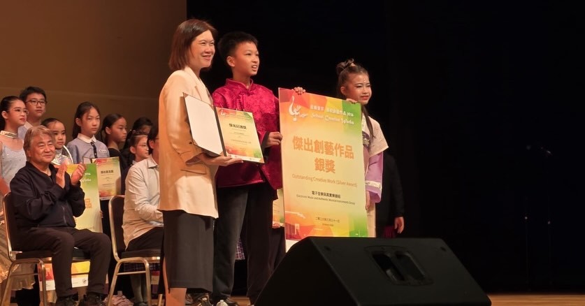 青小首次參加由香港教育局主辦的「音樂薈萃.學校創藝作品」比賽,15位小四至小六學生一手包辦作曲、演奏、舞蹈設計及AI生成影片製作,充分體現自主學習和團隊合作的精神。