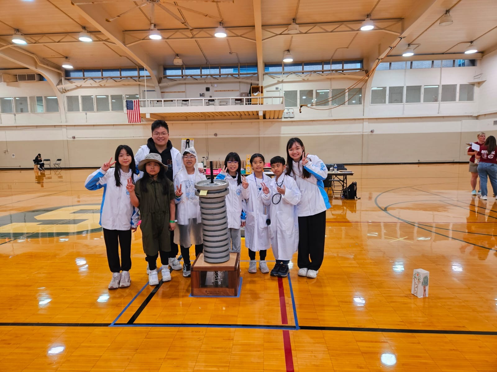 青童在8分鐘的話劇內展示了不同的stem知識,如應用紫外光照射服飾以展示特效,利用梳打粉結合檸檬酸產生大量二氧化碳造成爆開的音效。木架最終承受近500磅的力已被壓爛,比一些中學隊伍的結構有更好的承重效果。不過距離今屆世界賽小學組最高1095磅的紀錄,還有一大段追趕的距離。