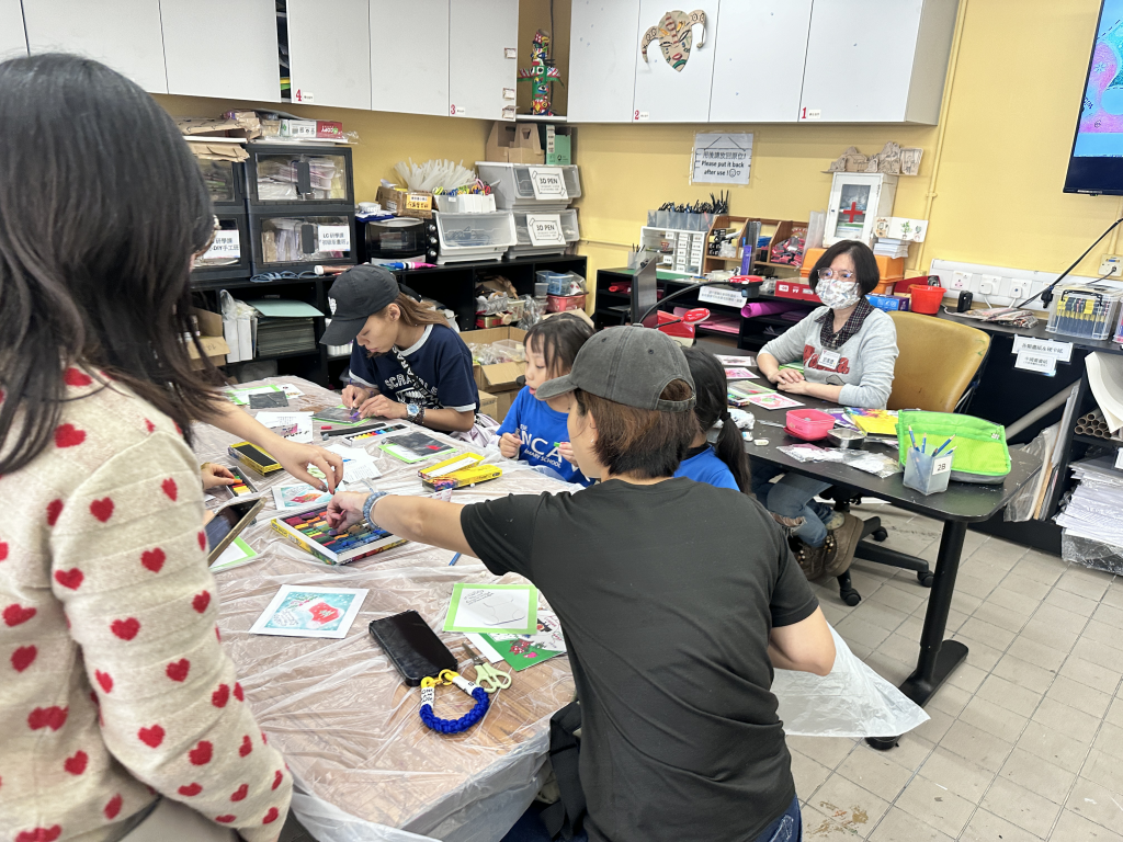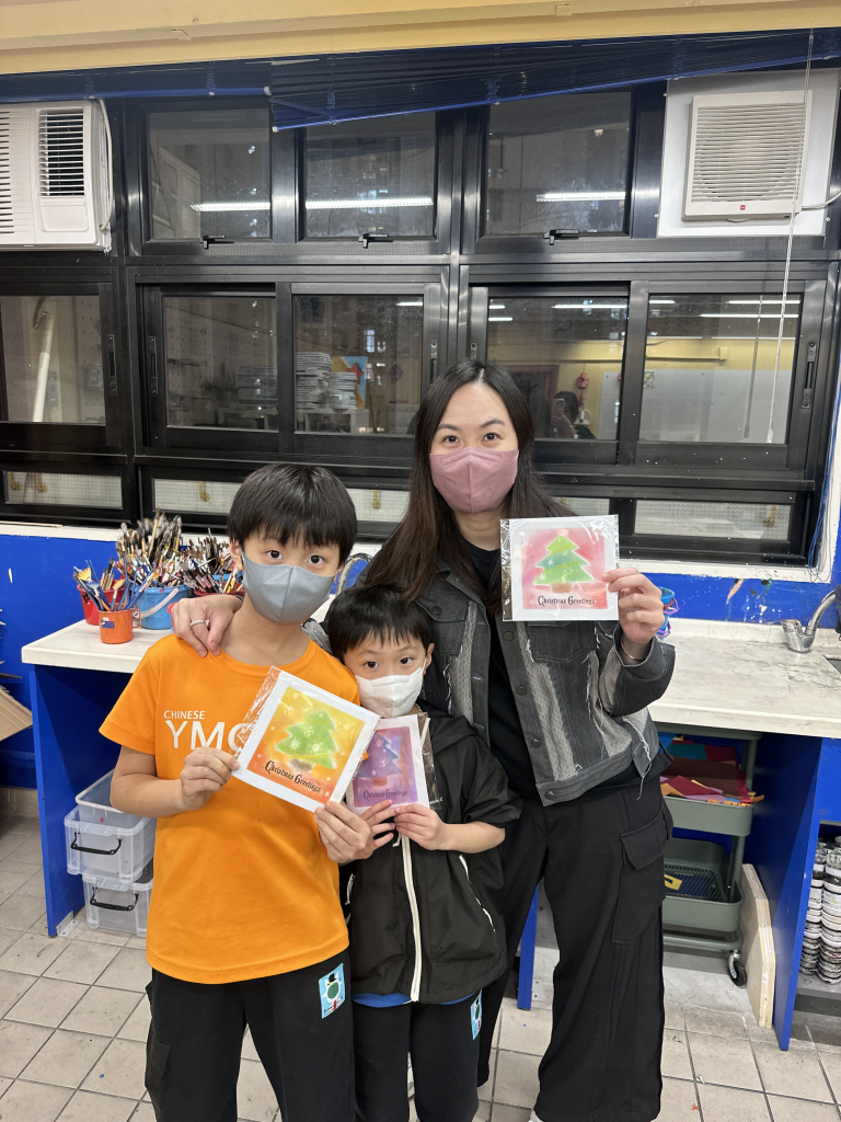 視覺藝術科在12月11日舉辦了「親子聖誕塑膠彩工作坊」。