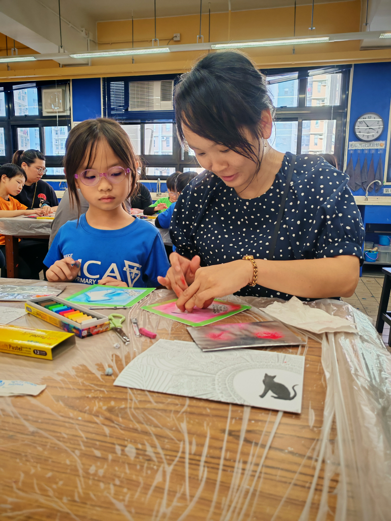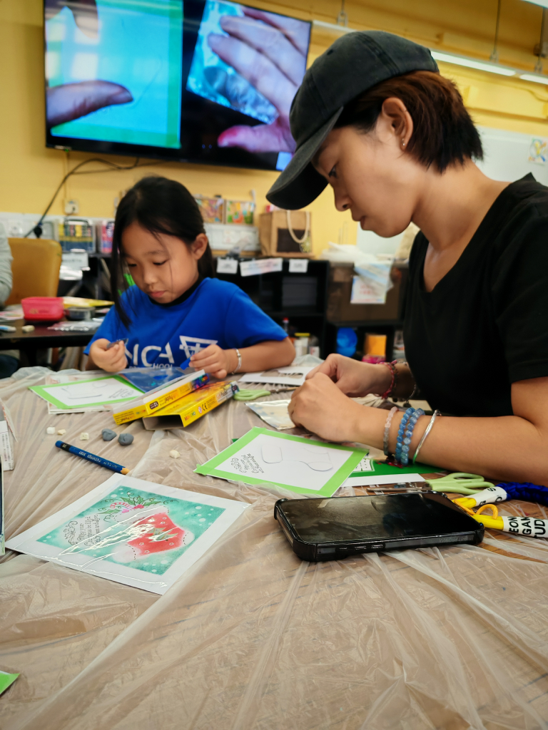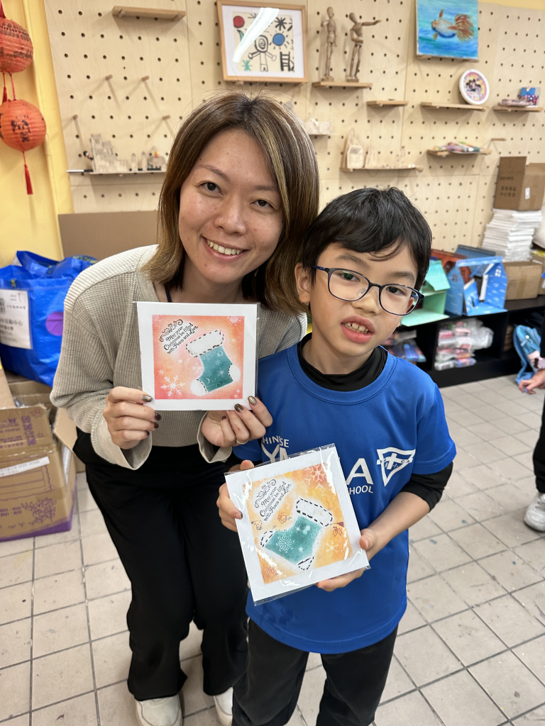 活動中,家長與孩子分別創作一幅畫作,這些作品不僅能獨立展示,更可巧妙拼接成完整的畫面,別具巧思與趣味。每對親子均攜手完成了以聖誕為主題的美麗畫作,並將作品帶回家中佈置,為佳節增添温馨的氣氛。