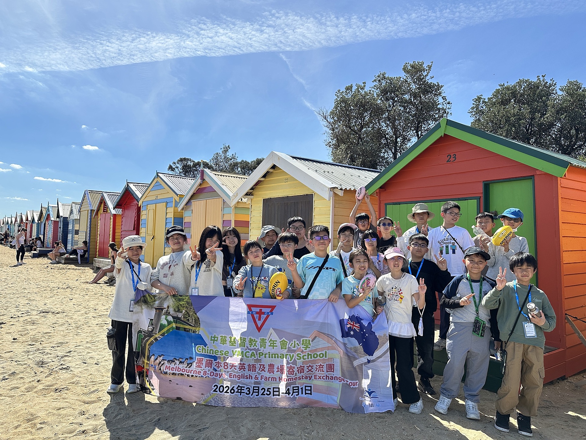 今天是「2026澳洲英語寄宿交流團」的第六天,行程將大自然與在地文化化為最生動的户外教室。青小同學們首先來到著名的布萊頓海灘(Brighton Beach),在色彩斑斕的海灘小屋(Bathing Boxes)前,不僅欣賞了獨特的海岸美學,更深入認識澳洲悠久的海濱生活文化。
